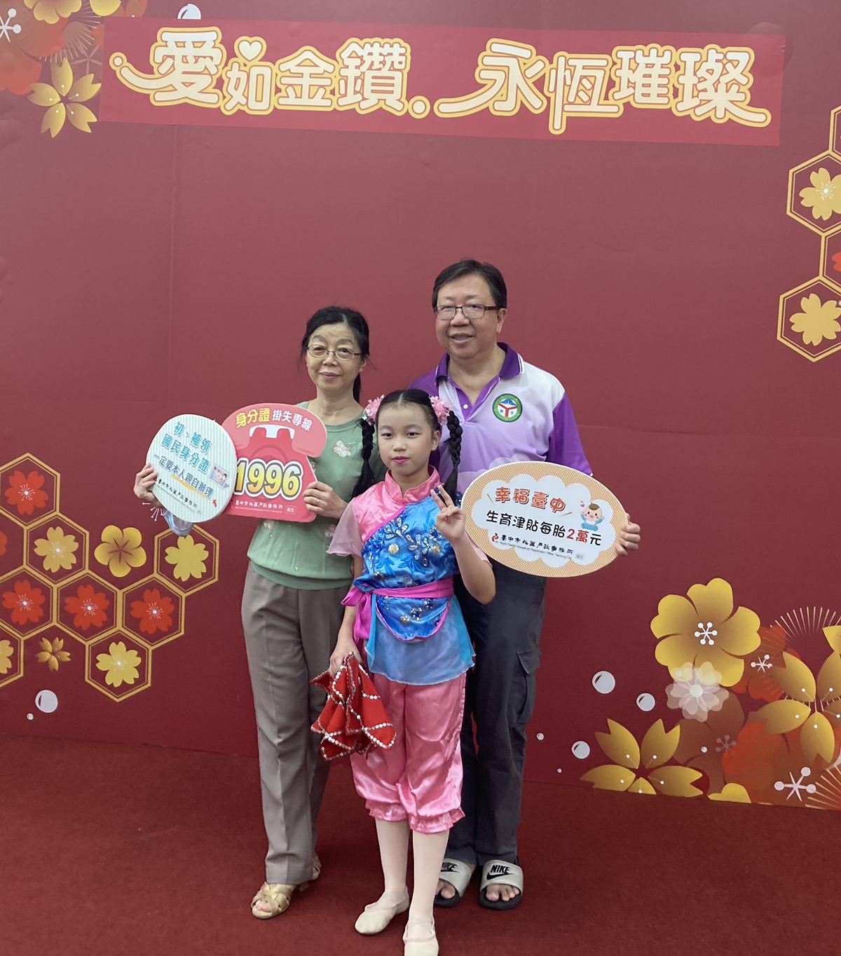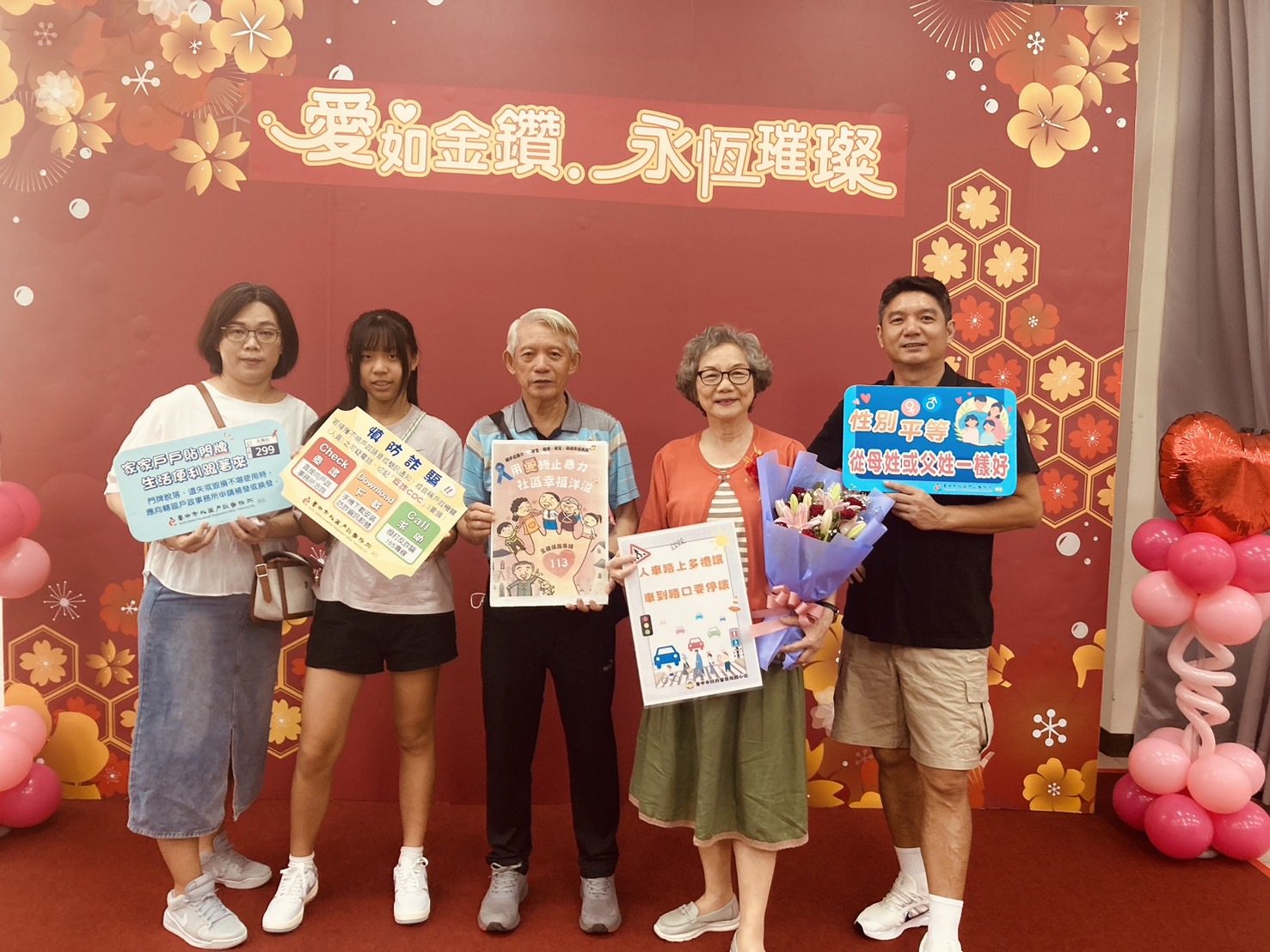 臺中市北區區公所辦理金婚、鑽石婚暨白金婚紀念表揚活動,本所共襄盛舉到場宣導戶政法令及便民服務, 一起見證和祝福近百對結縭牽手超過半世紀以上的夫妻。